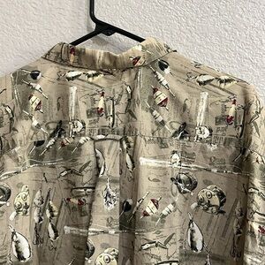 Bit & Bridle Shirt Men Large Tall LT Button-down Fishing Gear Print Short Sleeve