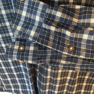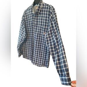Bit & Bridle Sz L Blue Cotton Plaid Western Rodeo Farm Long Sleeve Button Shirt