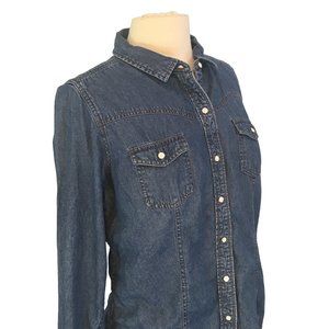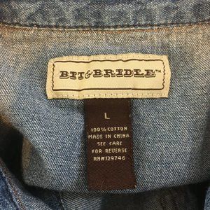 Bit & Bridle Womens Blue Chambray Button Front Fitted Shirt, Long Sleeves, Top L