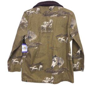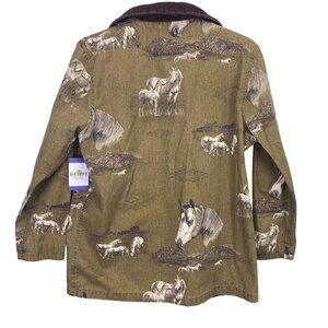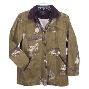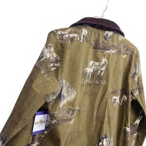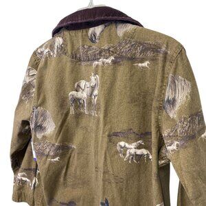Bit & Bridle Womens L Chore Barn Jacket Brown Horse AOP Corduroy Trim Equestrian