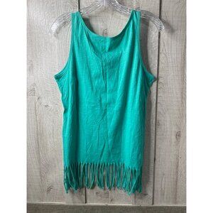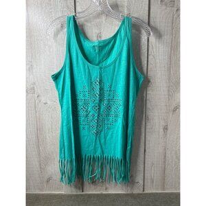 Bit & Bridle Womens Sleeveless Fringe Tank Top Western Design Teal Green Size L