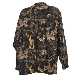 Bit & Bridle Deer Print Camouflage Button Down Shirt Sz L Hunting Outdoors Camo