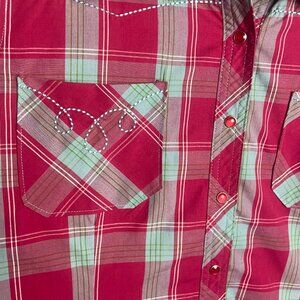 Bit and Bridle Women's Size L Pearl Snap Western Shirt Plaid Pink Embroidered