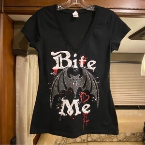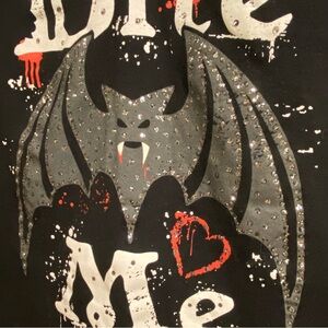 Bite Me Vampire Bat Glitter Tee: Sz. Juniors M