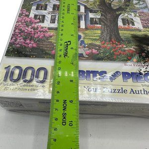 The Bits And Pieces Best Friends 1000 Piece Jigsaw Puzzle features a quaint porch flowers cottage scene. Finished size is 20"x27". Made from sturdy cardboard, it's suitable for all genders and makes a challenging and enjoyable pastime.