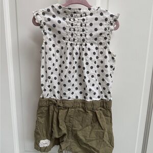 Bit’s Kids Girls Size 4 - 5 Polka Dot and Olive Green Short Sleeve Romper