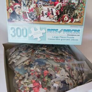 This is Bits and Pieces "Christmas Cats" by Barbara Behr. It is a 300-piece puzzle that is clean and gently used one time, with all pieces accounted for and in a bag. A name is slightly noticeable on the box. Thanks for looking!