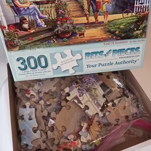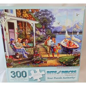 This is a pre-owned, used once, 300-piece puzzle entitled "End of Summer" by Oleg Gavrilov, ordered from Bits and Pieces. It measures 18" x 24", and all the pieces are accounted for, enclosed in a bag inside the box. A name is slightly visible on the front. Thanks for looking!
