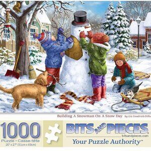 Bits and Pieces Snowman 1000 Piece Jigsaw Puzzles Liz Goodrick Dillon 20" x 27" SEALED, NEW IN BOX. This is a fun and colorful 1000 large piece puzzle is designed by Liz Goodrick Dillon and measures 20" x 27".