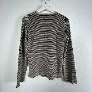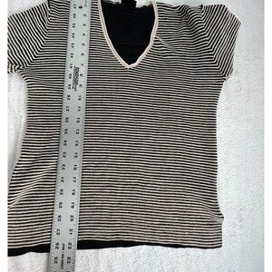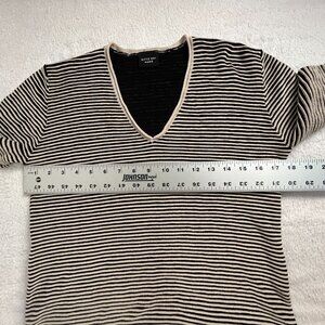 Bitte Kai Rand Womens Black Striped Knit V-Neck Sweater Top Long Sleeve Pullover