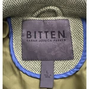 Bitten Sarah Jessica Parker Blazer Womens Lg Green Herringbone Wool Blend Career