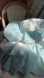 Adorable sparkly blue princess dress with puff sleeves and lace trim. Perfect for special occasions.
