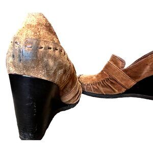 Biviel Brown Leather Wedge Loafers Sz 7 (38 EU) Womens 4" Heel w/ Side Buckle