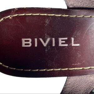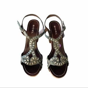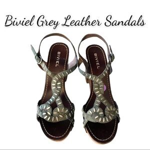 Biviel Gray Leather Studded Sandals, Clog Style With Wood Heels