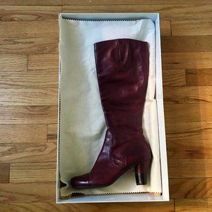 Gorgeous nearly new Biviel knee-high boots, incredibly well made and very comfortable. EU size 37, US size 7. Color is in the burgundy/maroon range, a rich dark red with purple tones. Come with the original box and interior wrapping.