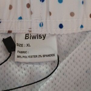 Biwisy white swim trunks swimming suit with tan blue polka dots Sz XL …