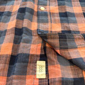 Bixby Nomad Plaid Button Down Shirt Men’s Large Orange Navy Check