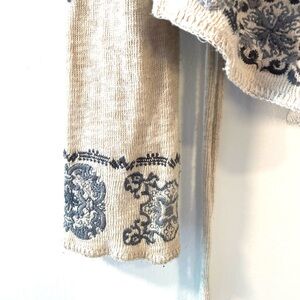 Biya Beige and Blue Women's Embroidered Cardigan