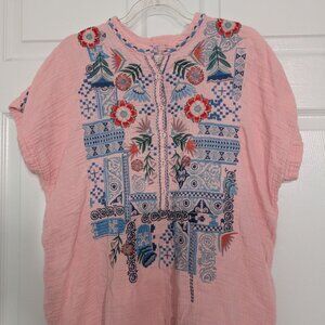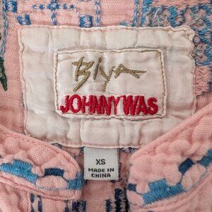 Biya Johnny Was Embroidered Floral Christly Shirt Womens Size XS Pink Boho