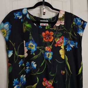 Biya Johnny Was Womens Dress Linen Black Red Blue Floral Drop Waist Shift Size S