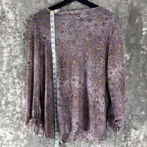 Biyaycda Size L Floral Print Scoop Neck Keyhole Top Purple Long Sleeve