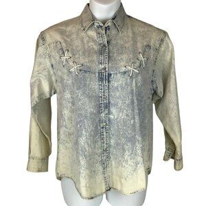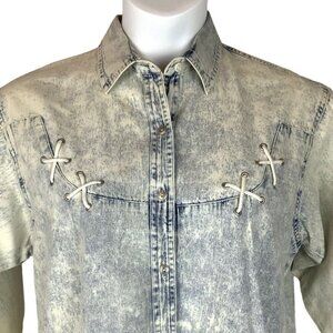 Biz Tango Blues Womens Acid Wash Western Shirt Size Medium Lacing Cowgirl 80s