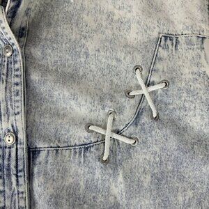 Biz Tango Blues Womens Western Shirt Medium Acid Wash Denim Lacing Cowgirl Vtg