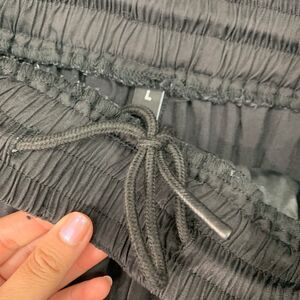 BJHG PANTS MENS L LARGE BLACK PLEATED DRAWSTRING WIDE LEG ELASTIC WAIST POCKET