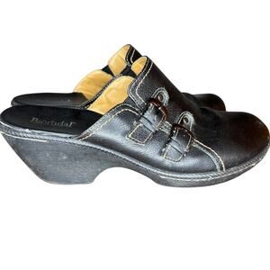 Bjorndal "Jessie" Platform Heels Women's Sz 10 Black Pebbled Leather Mules Boho