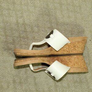 Bjorndal Marcie Women's 9 White Silver Accent 2.5" Wedge Sandals - EUC!