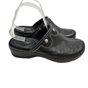 Bjorndal Shoes Womens 9 Seneca Black Leather Slip On Clog Casual Comfort