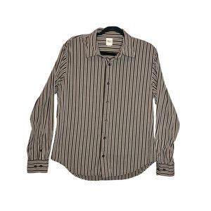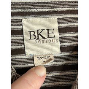 Bke Contour Mens Large Brown Striped Long Sleeve Button Up Shirt