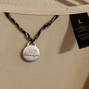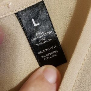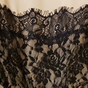 Gorgeous tan sheer top with black lace details in floral bke boutique size large no stains or damage size large