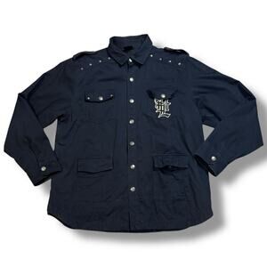 Blac Label 68 Shacket Mens Black Gold Embroidered Skulls Iron Cross Shirt ~XL