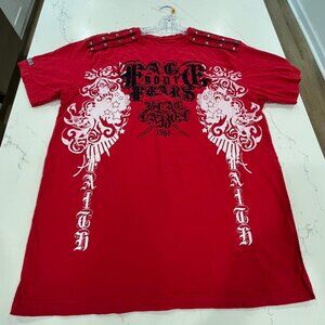 Blac Label Premium Mens Vintage Y2K Red Embroidered ShortSleeve Rivet T-Shirt L