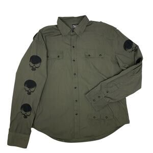 Blac Label Snap Up Shirt Mens Size 2XL Y2K Military Green Grunge Punk Metal Emo