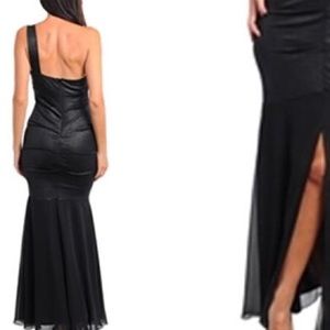 💐🟡Black 1 Shoulder Gown W/Brooch-Medium