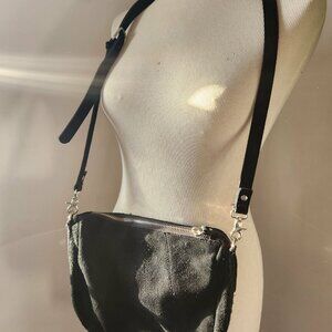 Black 100% Cow Suede Leather Crossbody Purse Small to Medium Sized