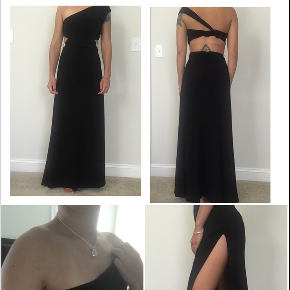 Very sexy ball or prom dress with a side slit and semi open back with stone designs on the side of the dress. I'm 5'5" and 128 in weight.