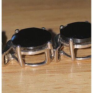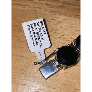 Black 14.4g Sterling Silver BBJ Round Brilliant Cut Black Glass Stone Bracelet 8