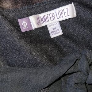Size 1x, Jennifer Lopez black sequined sweater with v-cut on both back/front. The back side has an adjustable tie.