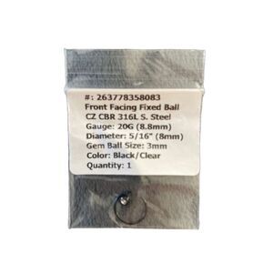 Black 20g Hoop Nose Ring Front Facing Fixed Ball Gem 8mm