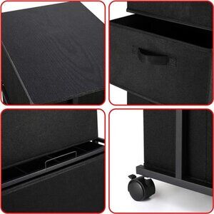 Black 3 Drawer Storage Tower Dresser Fabric Organizer Rolling Slim Bedroom Close