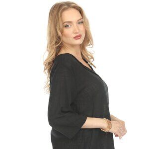 This relaxed top offers a rollup sleeves and v neck, making it perfect for any occasion. It is a comfortable fit. all and is made in Italy for quality and comfort. Pair up with faired, straight, trouser, jeans etc.