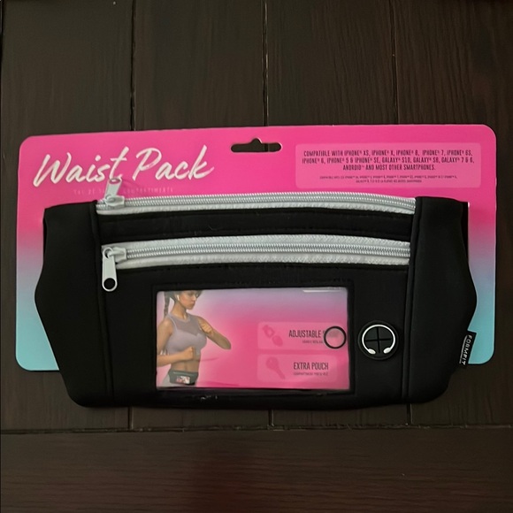 Stylish black waist pack. Adjustable strap. Extra pouch for convenience.