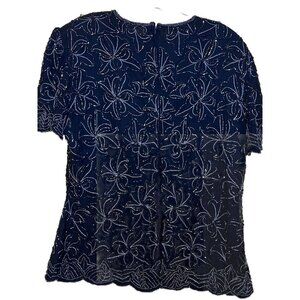 Black 80's Beaded Silk Evening Formal Blouse Top Lined Shoulder Pads