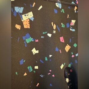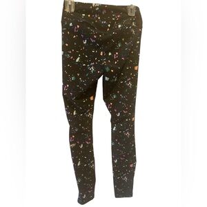 Black 80s confetti print workout athleisure leggings. Size large small. Fun retro multicolored print