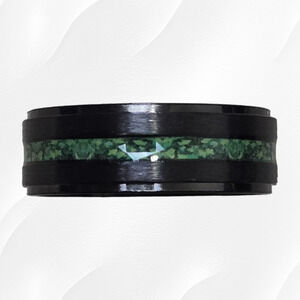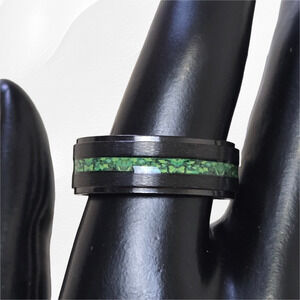 Black 8mm Inlaid Green Minimal Stainless Steel Band Fashion Ring Size 10