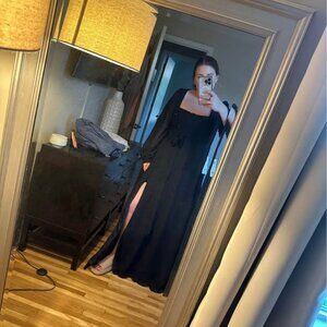 Black A-Line Long Sleeve Stretch Crepe Dress
