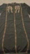 Black burka with contrasting brown and crème designs. Two motifs on the chest and one on the back. Front has three long stripes that matches the collar and sleeves. Front of the burqa closes with buttons.